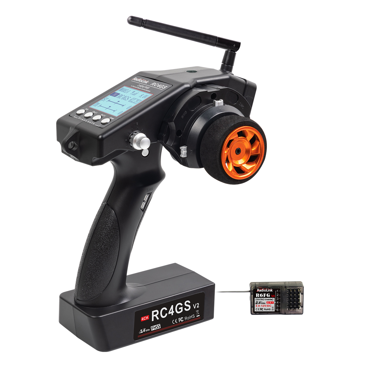 【Excellent Anti-interference】: With pseudo random FHSS algorithm, which makes RC4GS with excellent anti-interference ability, control range up to 1300 feet (400 meters). 【Built in Gyro】: Built-in gyro can keep the vehicle in a straight line, and Gyro sensitivity can be adjusted by the transmitter's VR switch, which fits for drifting car and on-road cars. 【Powerful Function】: EPA, ABS, fail-safe, D/R, IDLUP, low power alarming, subsidiary ID(control multiple receivers separately),etc. CH3-CH4 can be customized to VR and tact switch. 【Dual Programmable Mix Control】: Mix control can be programmed with any two channels and each channel can be customized. That's friendly for twin-engine vehicles, such as tanks, boats, 4 wheel steering car. 【Adapts to Most of Types Vehicles】: with 10 models memory, each model can be set up and named separately. It is suitable for RC rock crawler, monster truck, buggy, gas powered, nitro, on/off-road RC car, etc.