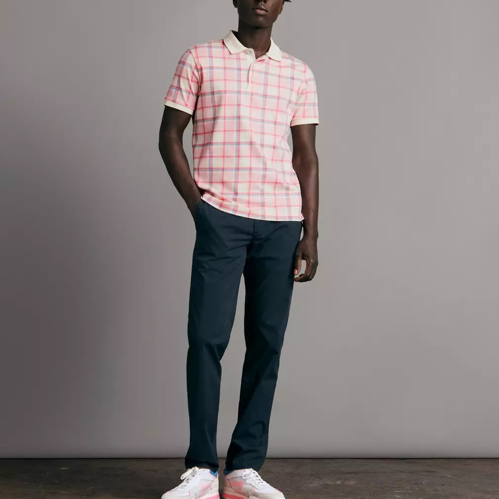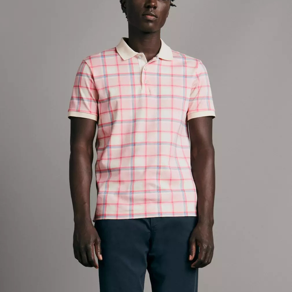 100% Cotton Breathable Interlock Plaid Short Sleeve Polo Shirt For Men Custom Embroidered Logo Street Wear