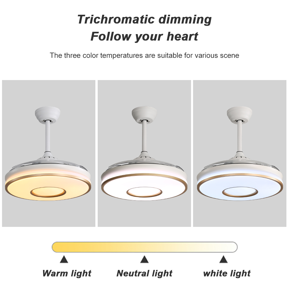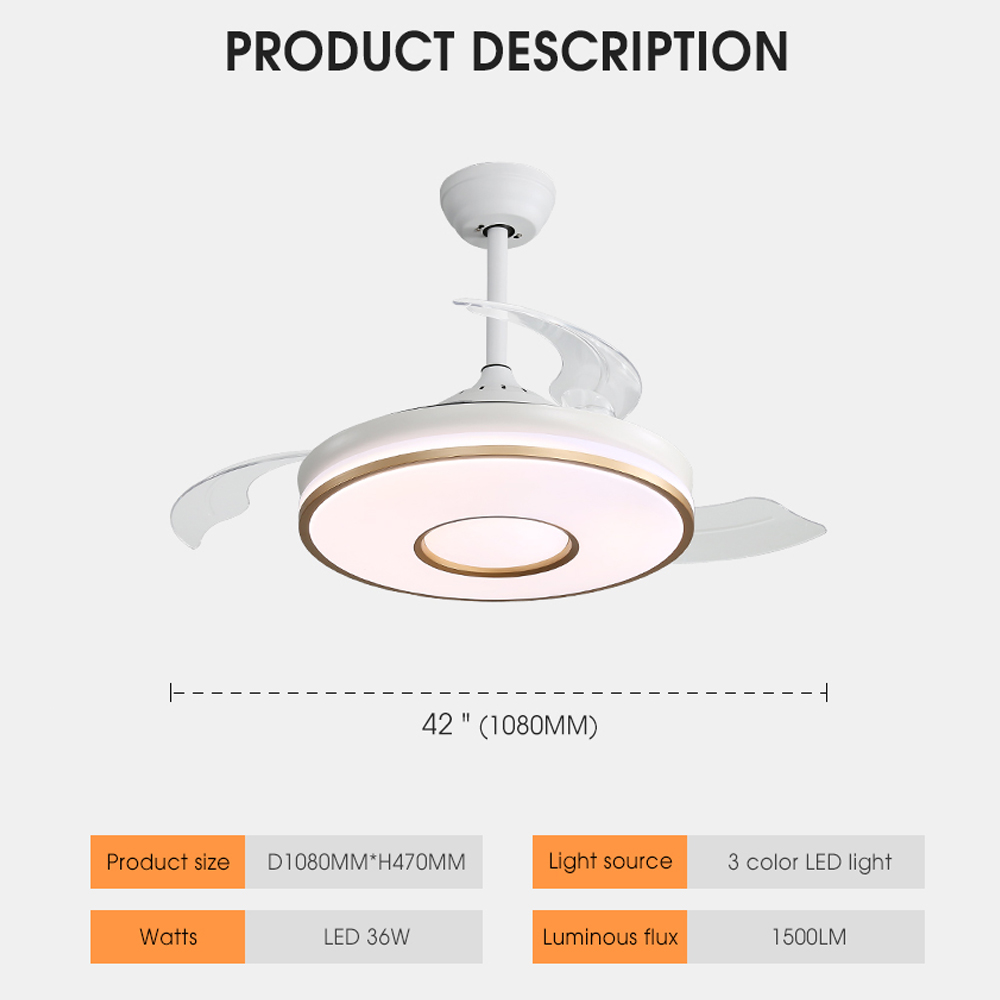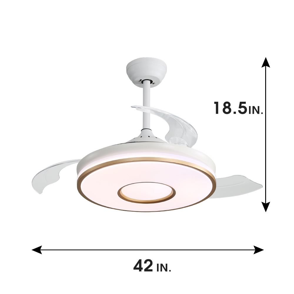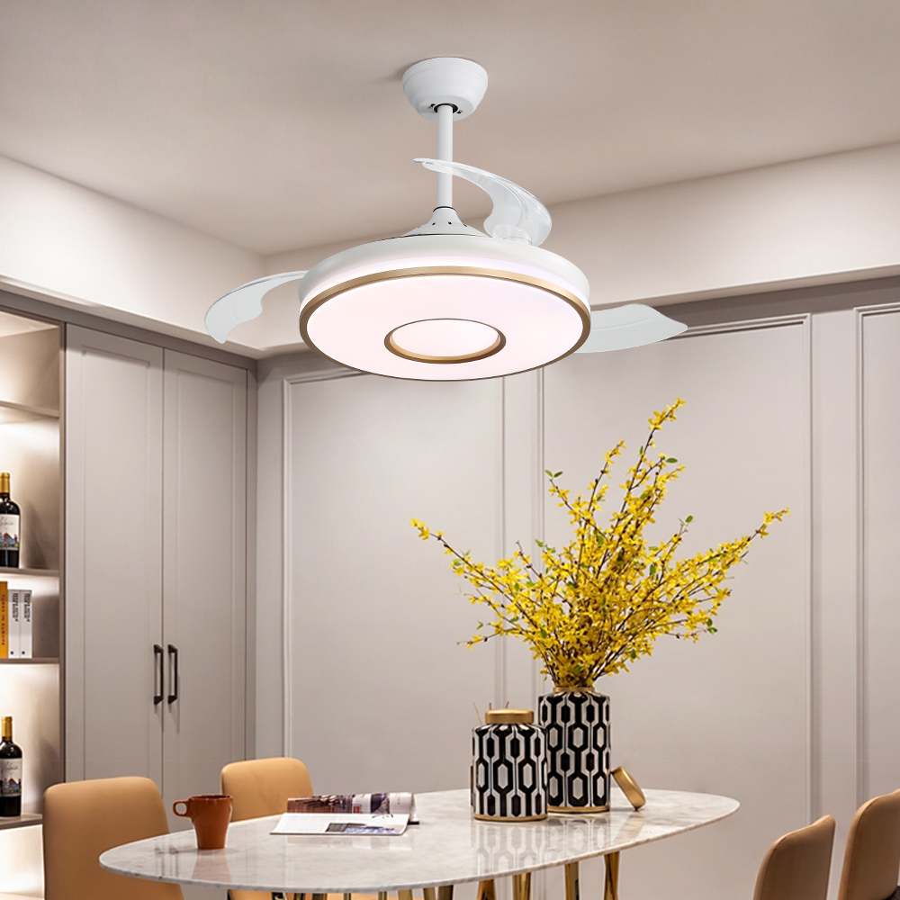 Amazon Hot Sale Indoor Retractable Invisible 42 Inch 75w Remote Control Dc Smart Ceiling Fan With Light
