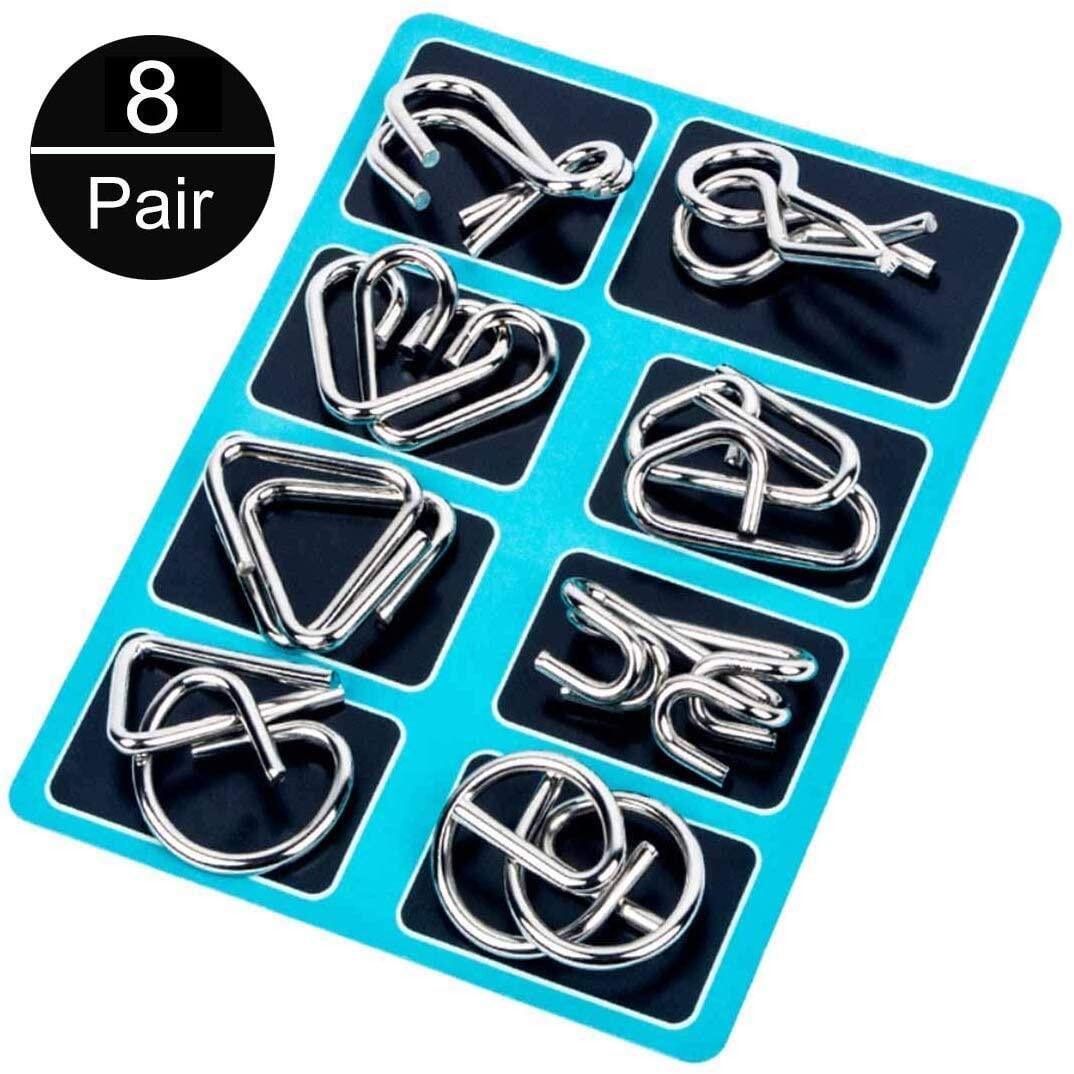 Brain Teasers Metal Wire Puzzle Toys | 8 Pcs Unlock Interlock Game | IQ Test Challenge Toy Gifts, Party Puzzle Unlock Interlock Toys for Kids Boys and Girls AdIts All Age