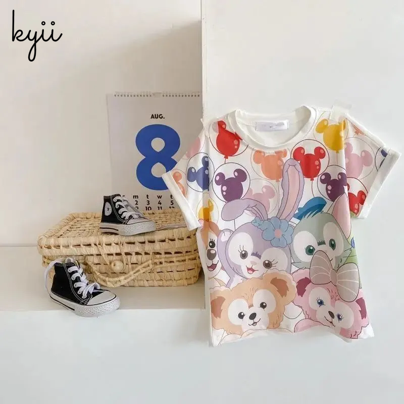 KYII Design INS Girls New Short Sleeve T-shirt Ummer Children's Wear Loose Cartoon Girls Clothes ky099