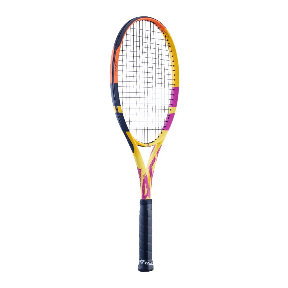 Rafael Nadal's very first signature racket- the Pure Aero Rafa was developed in collaboration with the 13-time Roland Garros champion by Babolat. Its exclusive new graphic design matches the player’s personality and distinctive gameplay. Nadal chose a combination of warm, explosive colors with dominant tones of yellow, purple and orange.