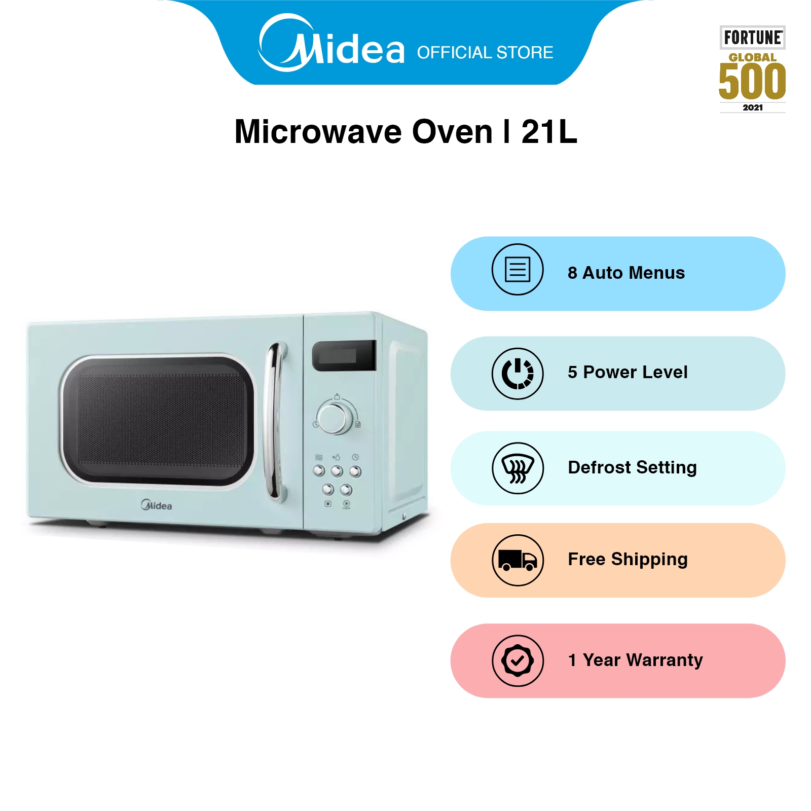 Midea AM820C2RA Light Retro Green Quick Defrost Microwave Oven, 21L