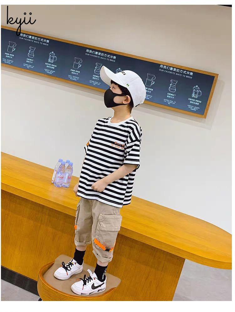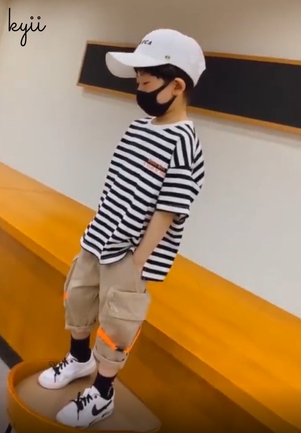 KYII stripe short sleeve Casual boys cotton summer loose shirt Korean Shirt kyb005