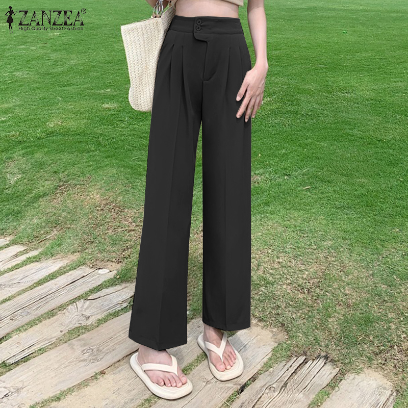 ZANZEA Korean Style Women High Waist Solid Casual Outing Loose Long Suit Pants Trousers
