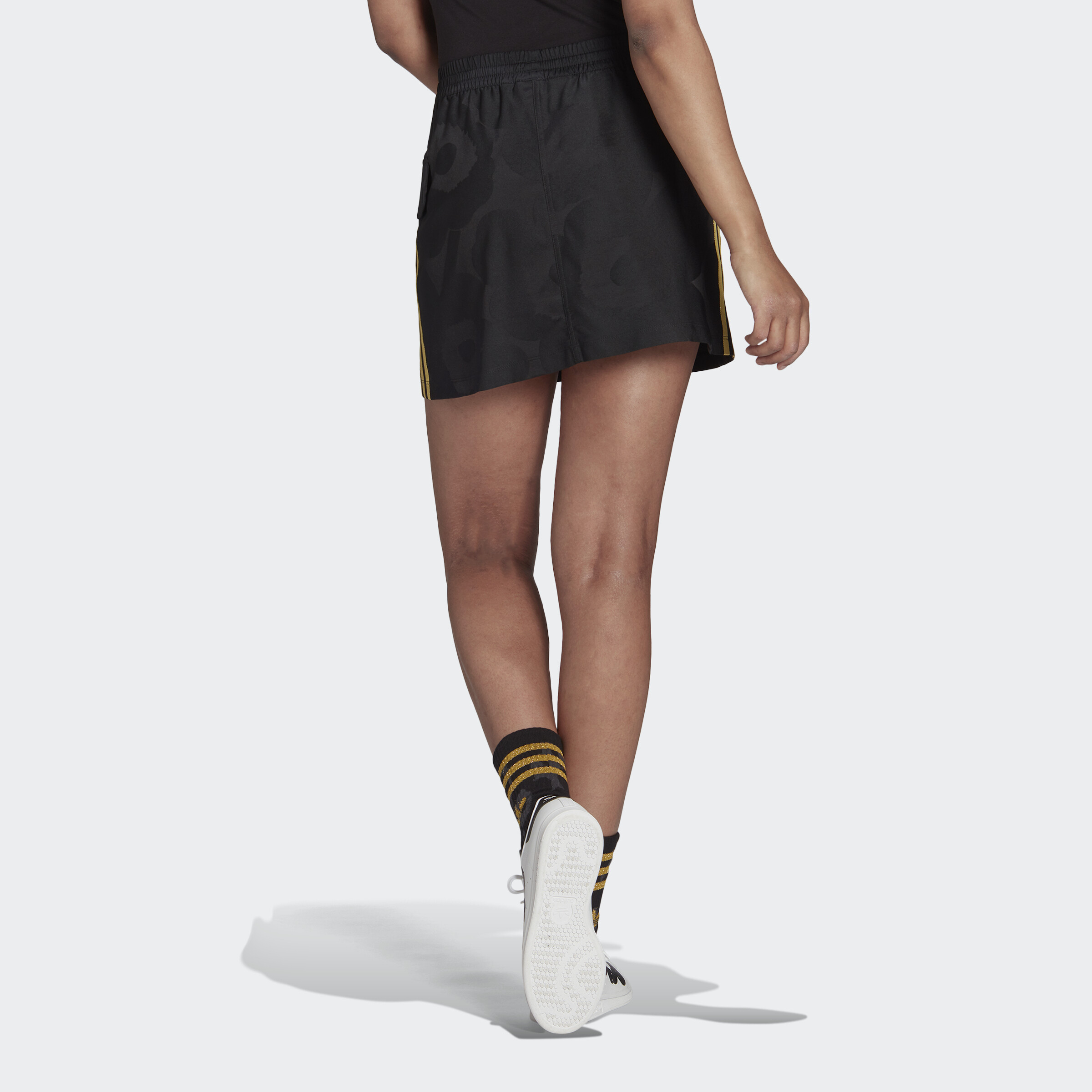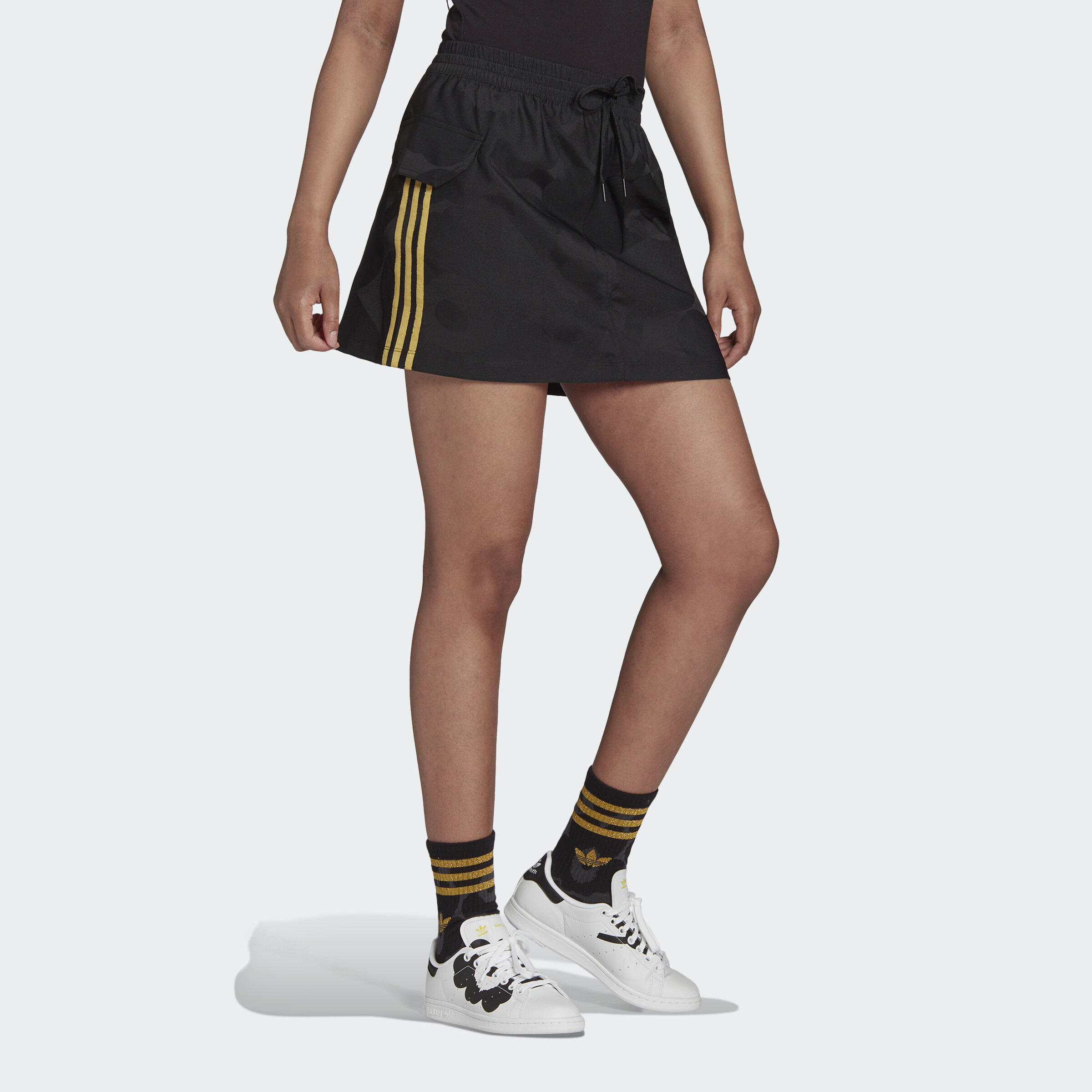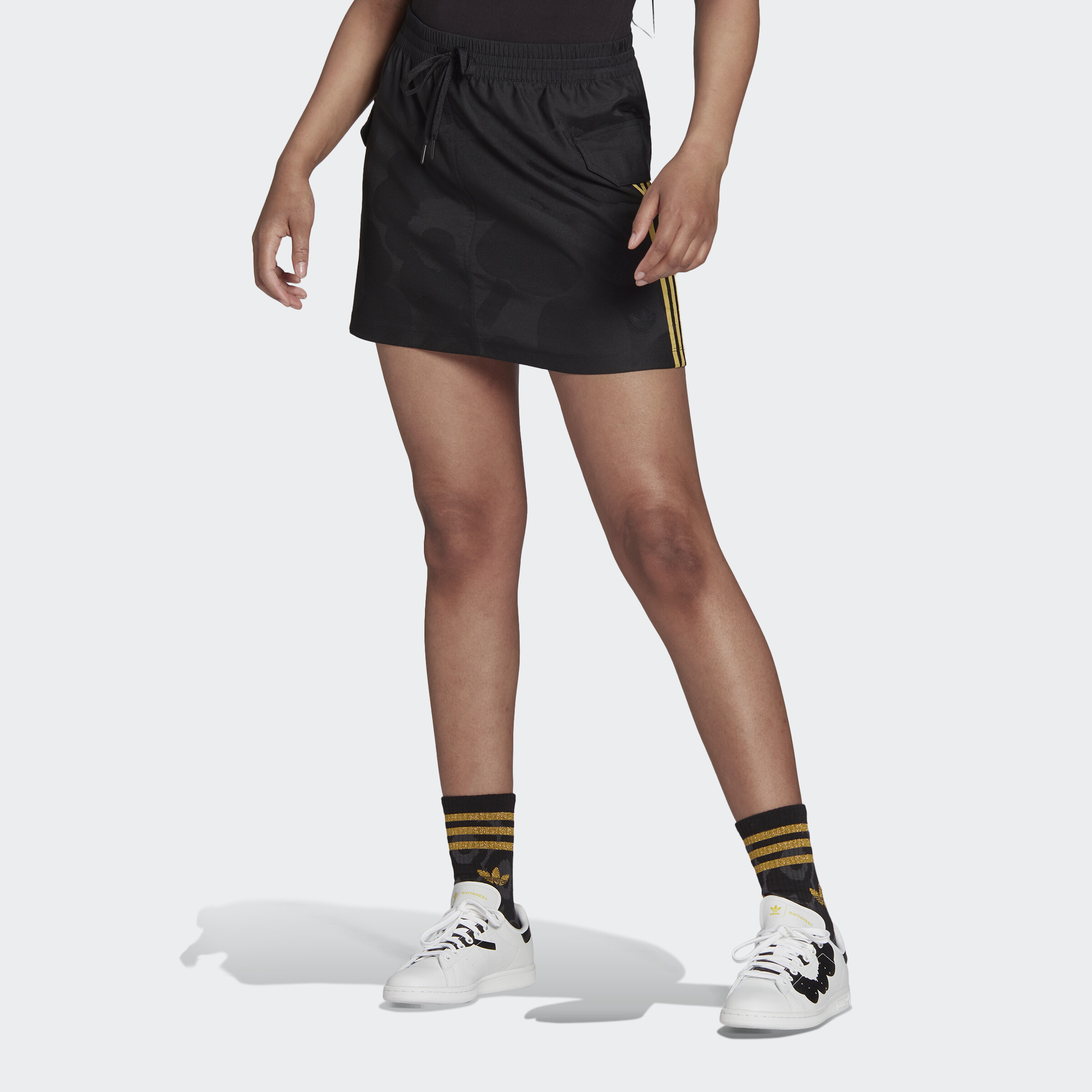 adidas Lifestyle Marimekko Mini Cargo Skirt with Golden Stripes and Cargo Pockets Women Black H20195