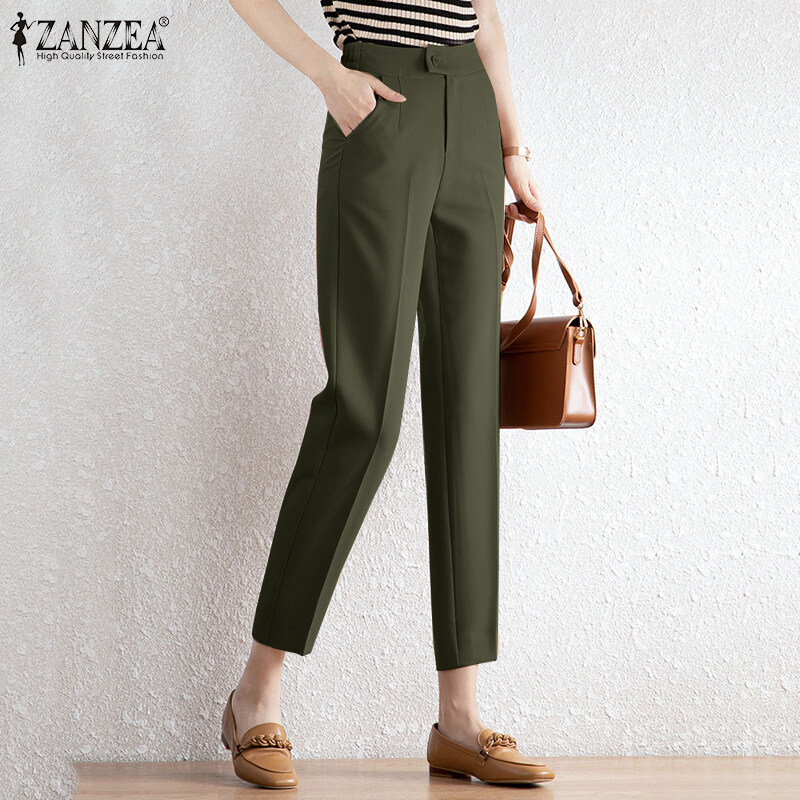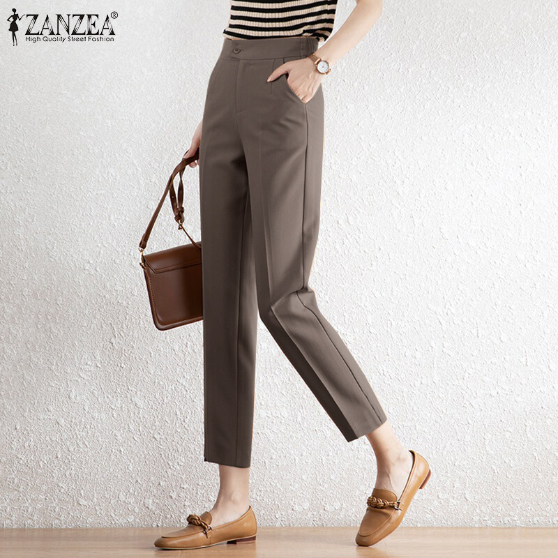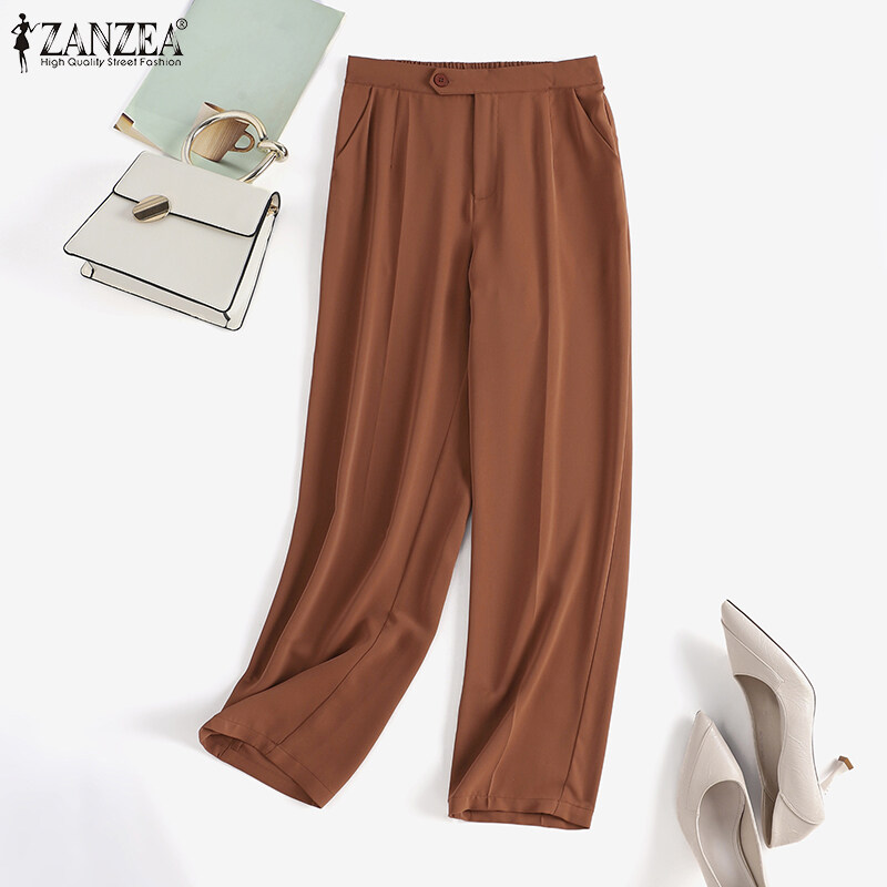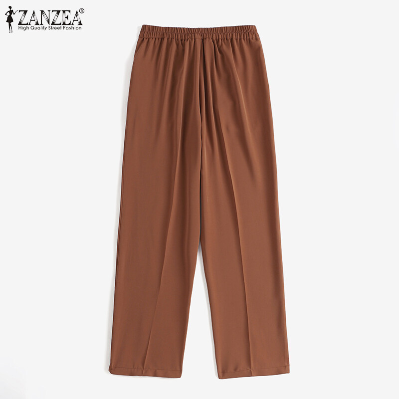 ZANZEA Korean Style Women Office Ladies Pants Casual Elastic Waist Straight Trousers Slacks #10