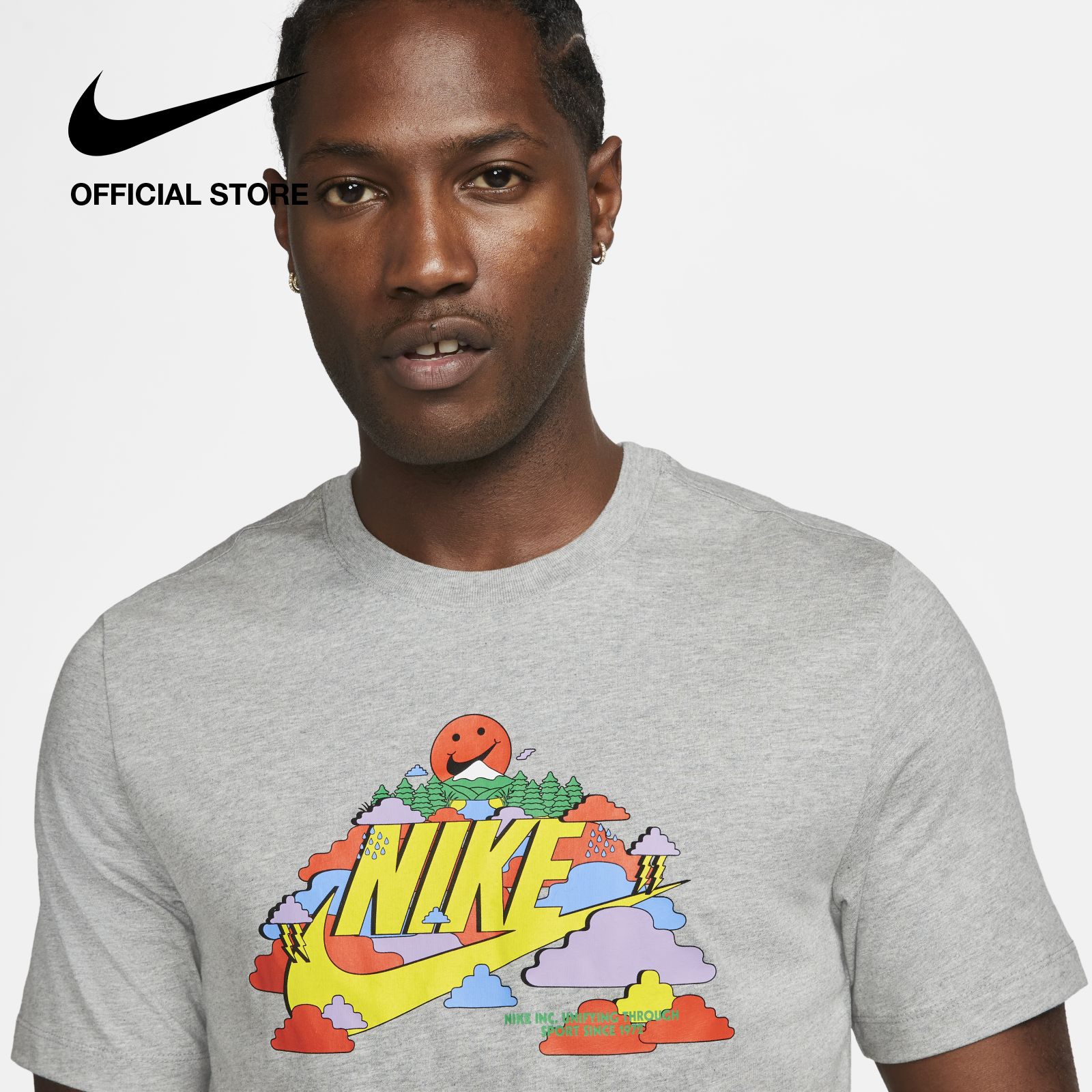 Made with our soft midweight cotton fabric in a roomy fit, this Nike tee embraces '70s era graphics and good vibes. Pull it on, go find a rainbow and have a Nike day.