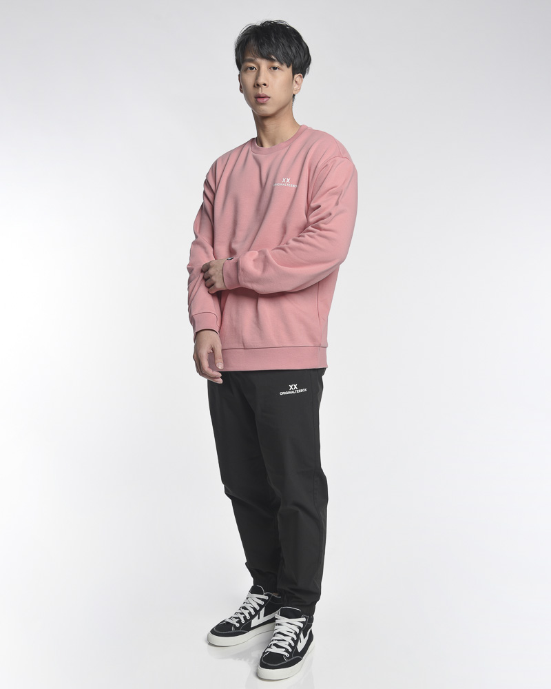 Yishion Men Oversized Solid Coloured Long Sleeve Sweatshirt with "ORIGINALTEEBOX" Logo (Pink)