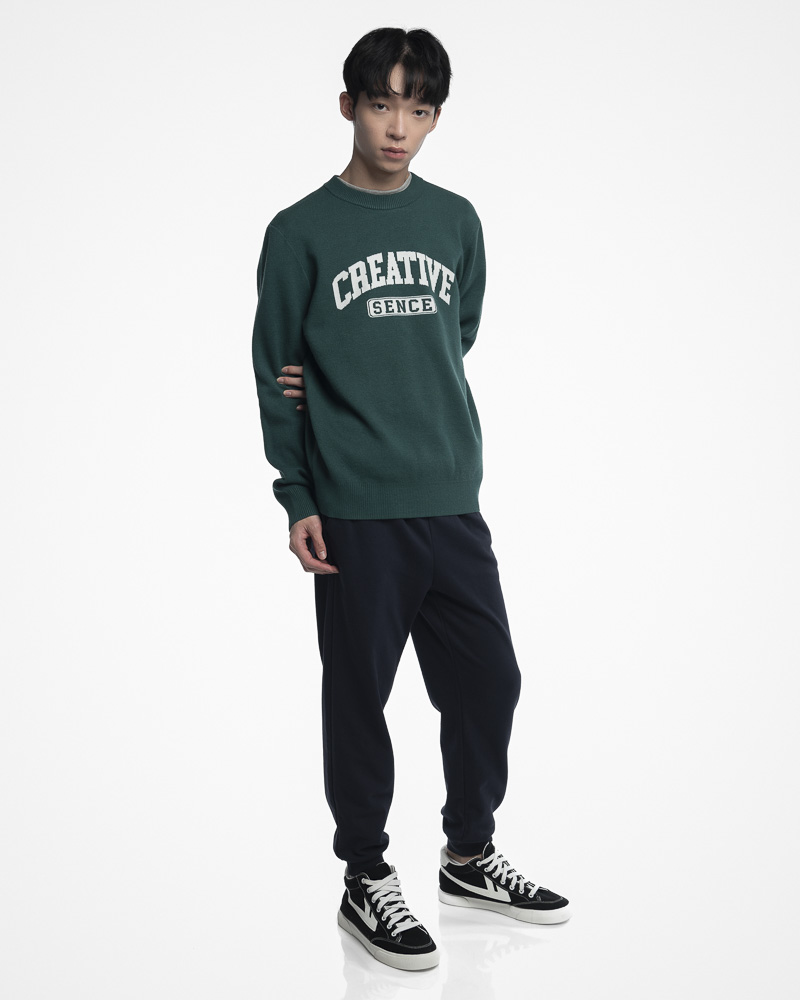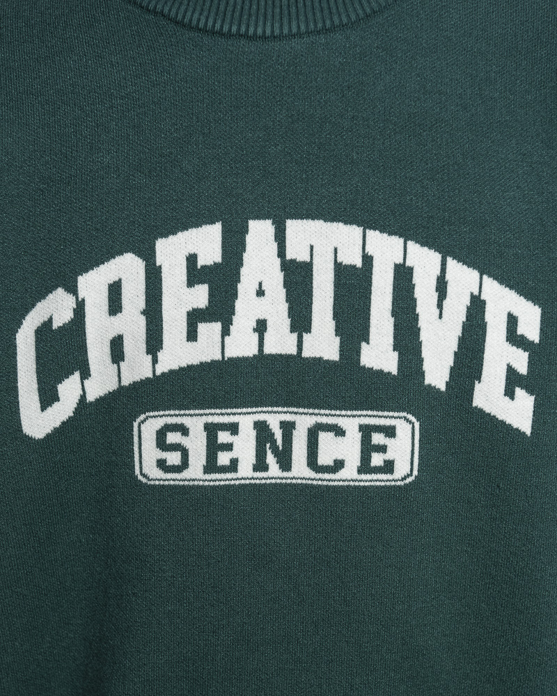 Yishion Men Solid Coloured Long Sleeve Sweatshirt with CREATIVE Slogan (Dk. Green)