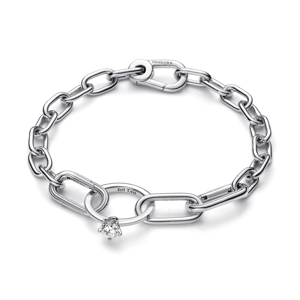 Commit to the most important person in your life - yourself - with the Pandora ME Marry Me Double Link. Hand-finished and engraved with the reminder "Self love", this sterling silver double styling link features a rounded rectangular link connected to a small solitaire ring. Wear yours between styling connectors on your Pandora ME link chain bracelets or necklaces, or hang it on a pair of hoops for a unique statement.