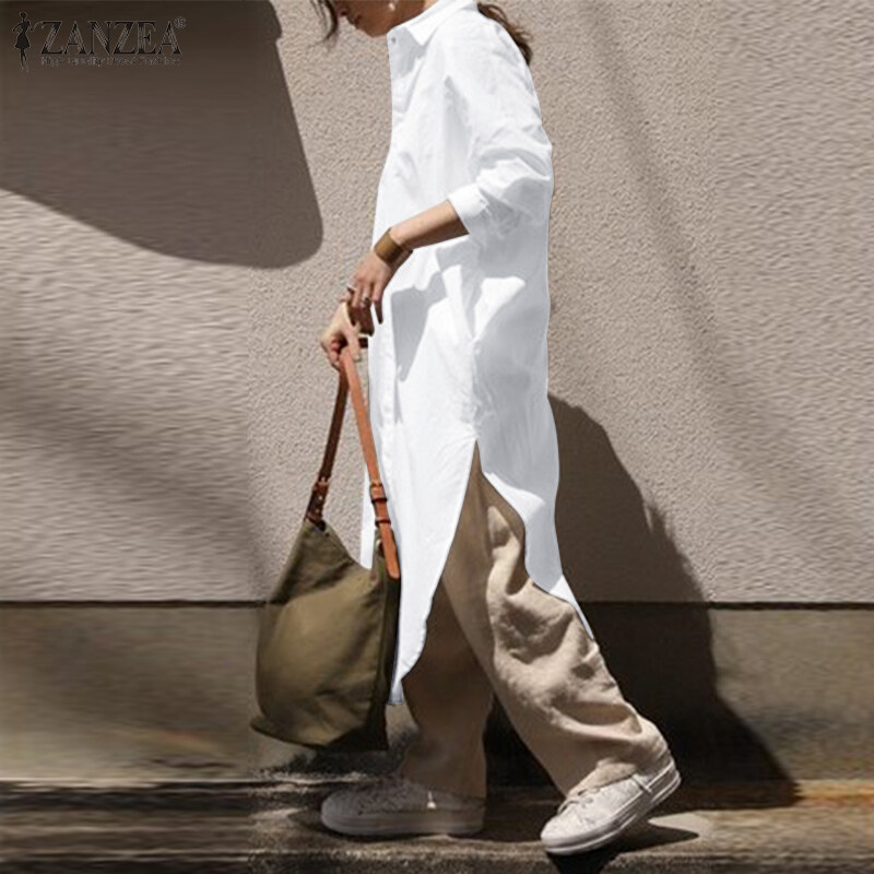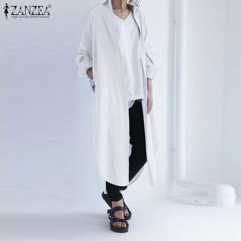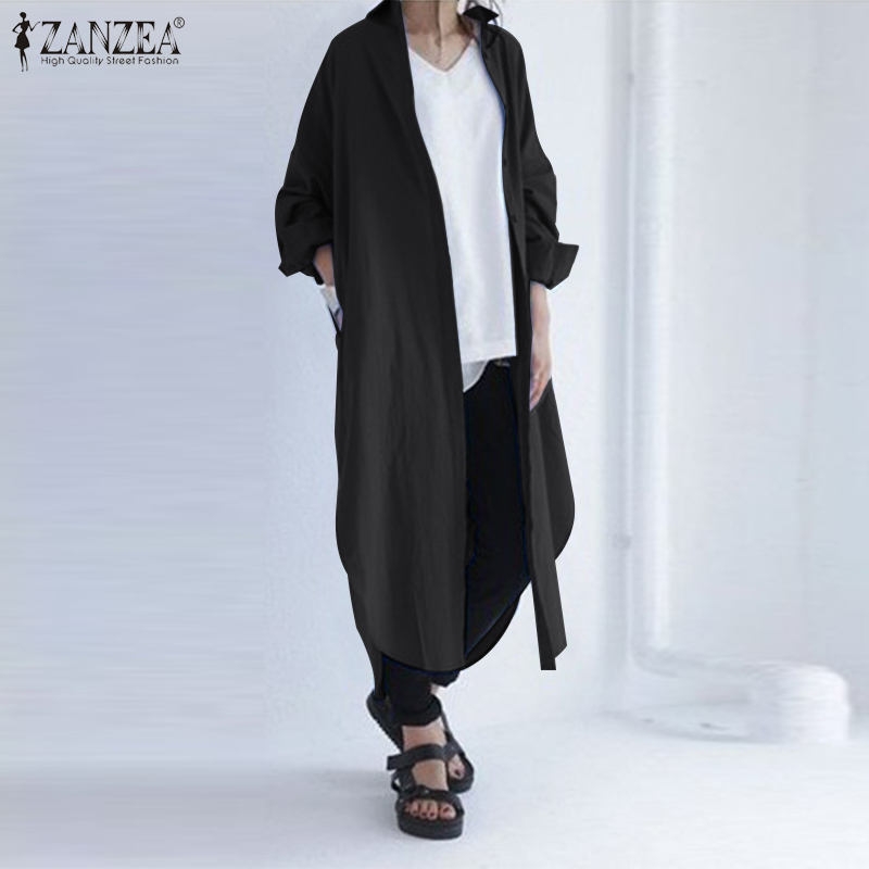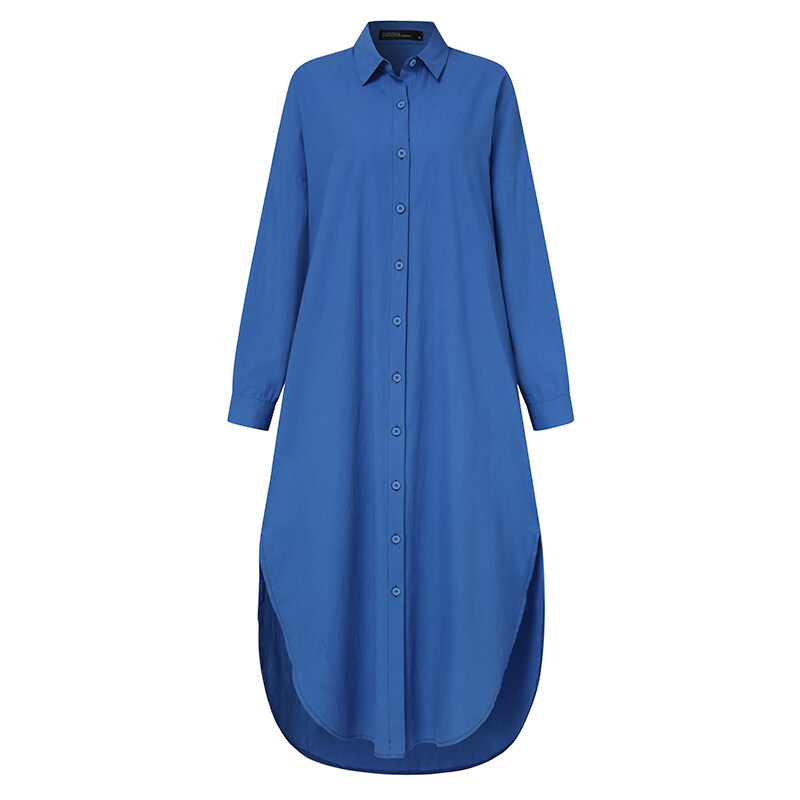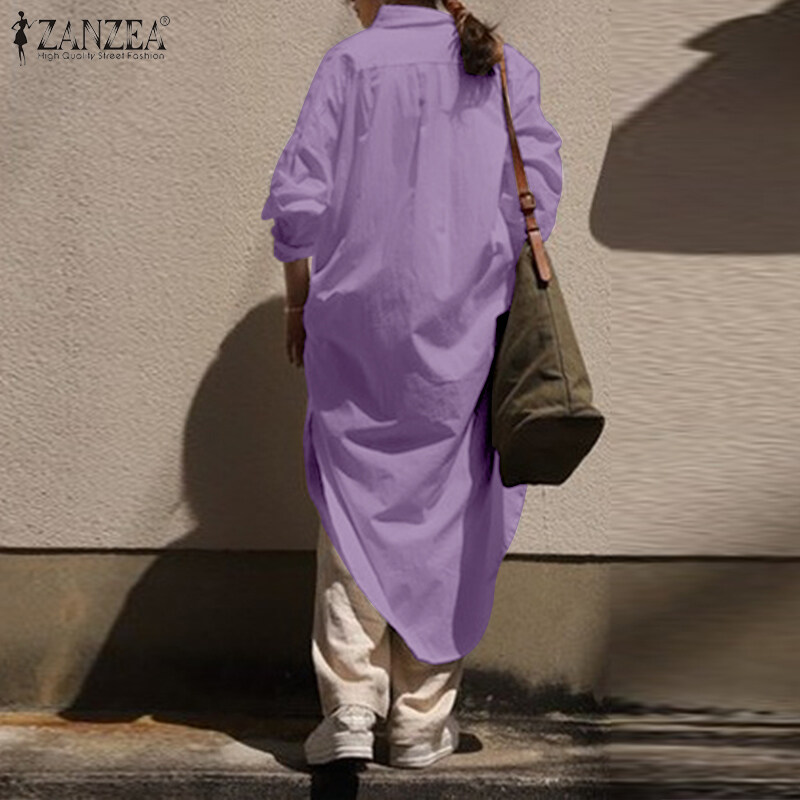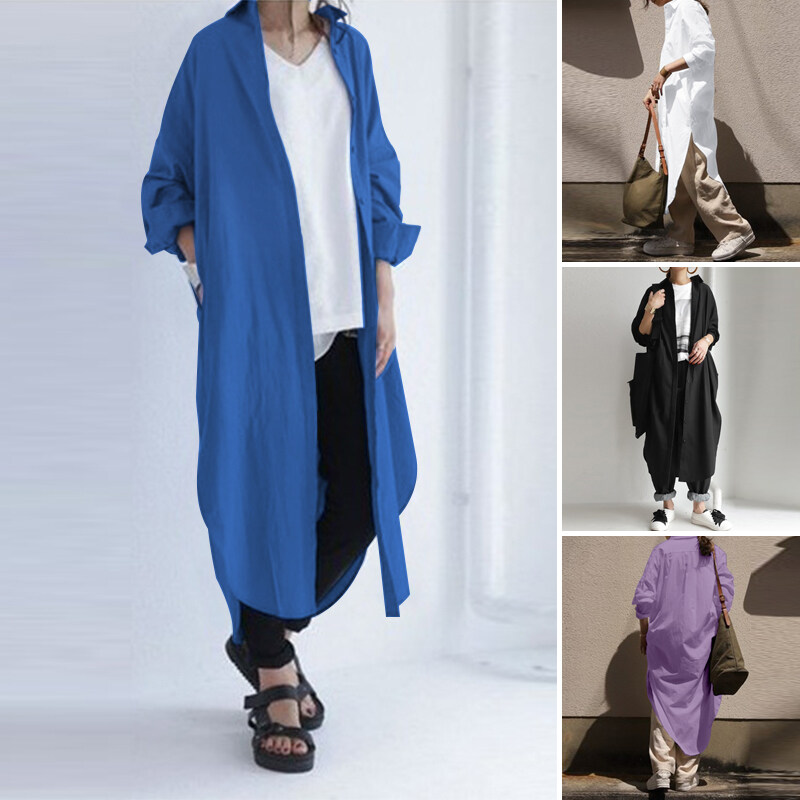 [Clearance Sale]ZANZEA Women Long Sleeve Lapel V Neck High Low Kaftan Maxi Shirt Dress Outwear Cardigan#8 CLE
