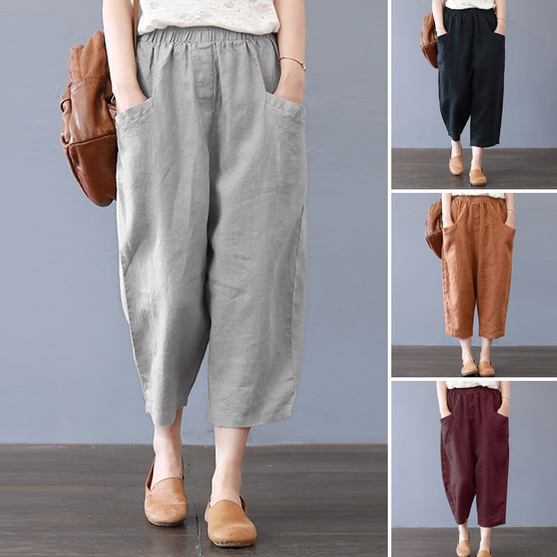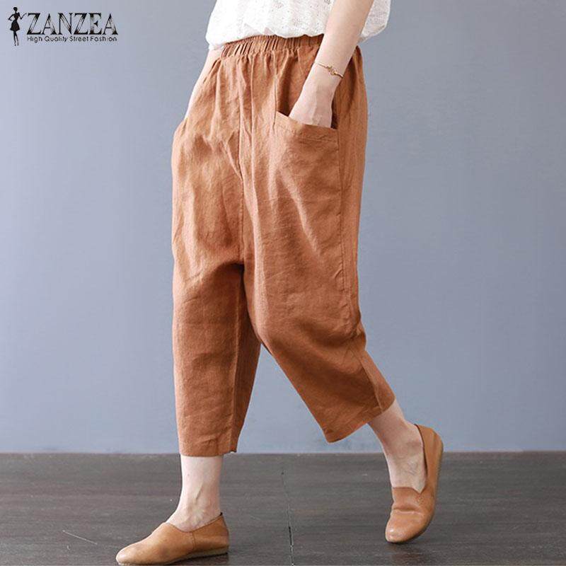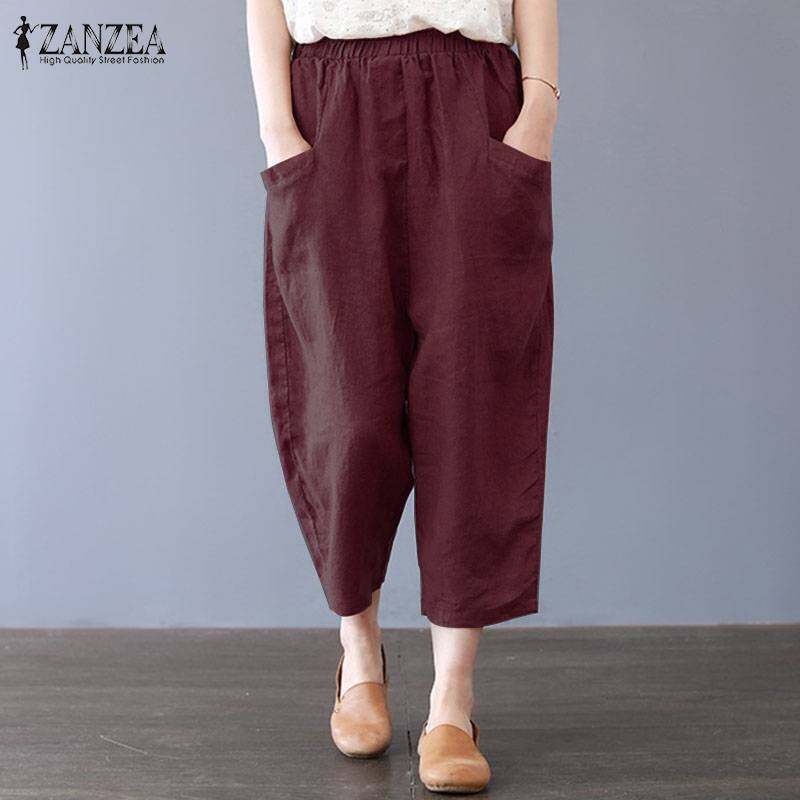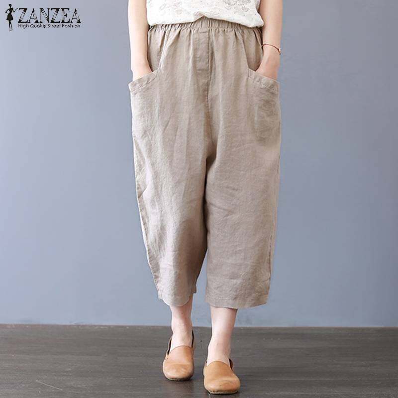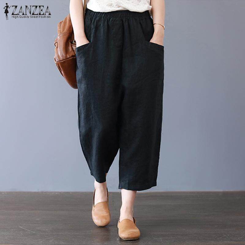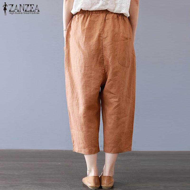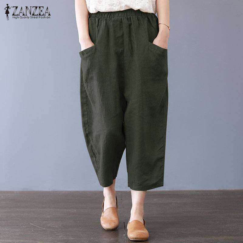 S-5XL ZANZEA Women's Casual Harem Pants Cotton Ethnic Baggy Trousers Plus Size