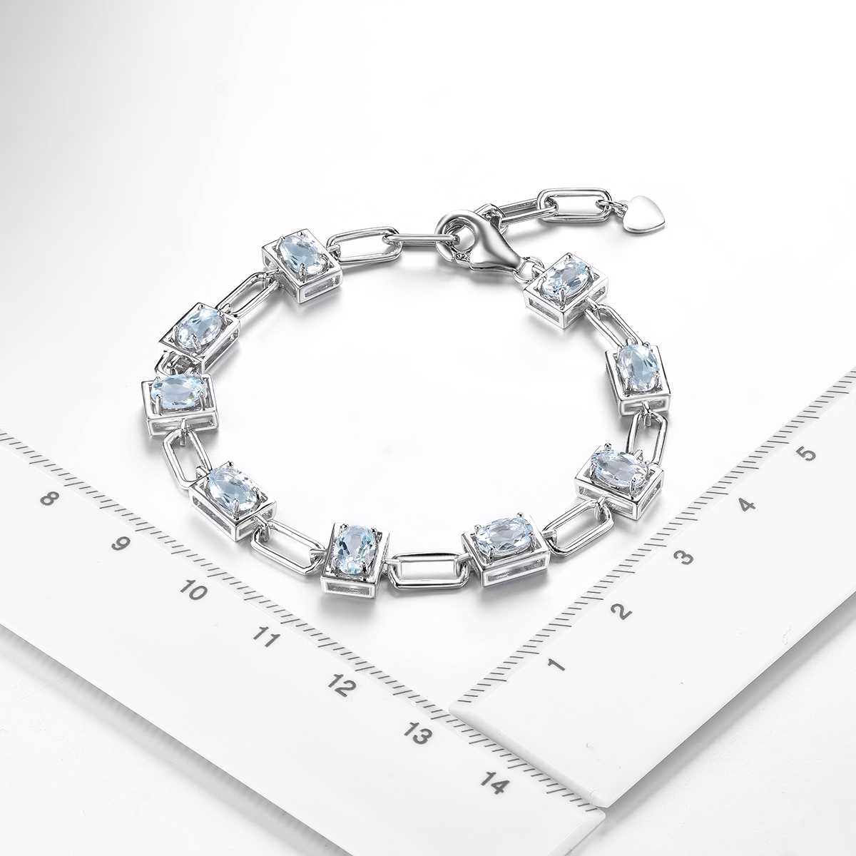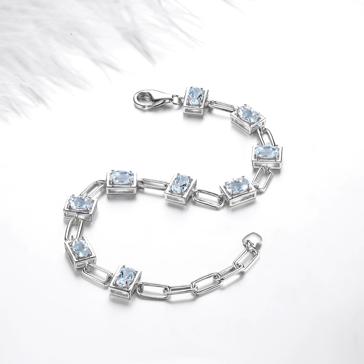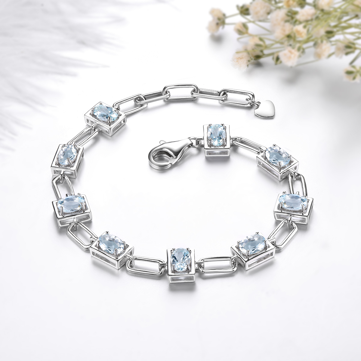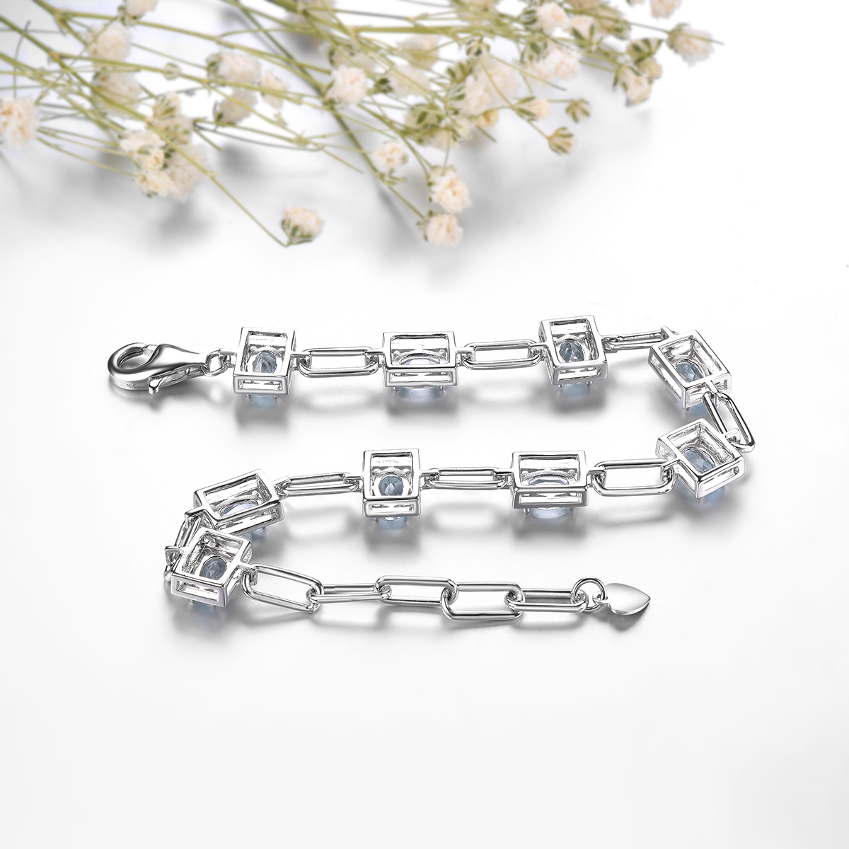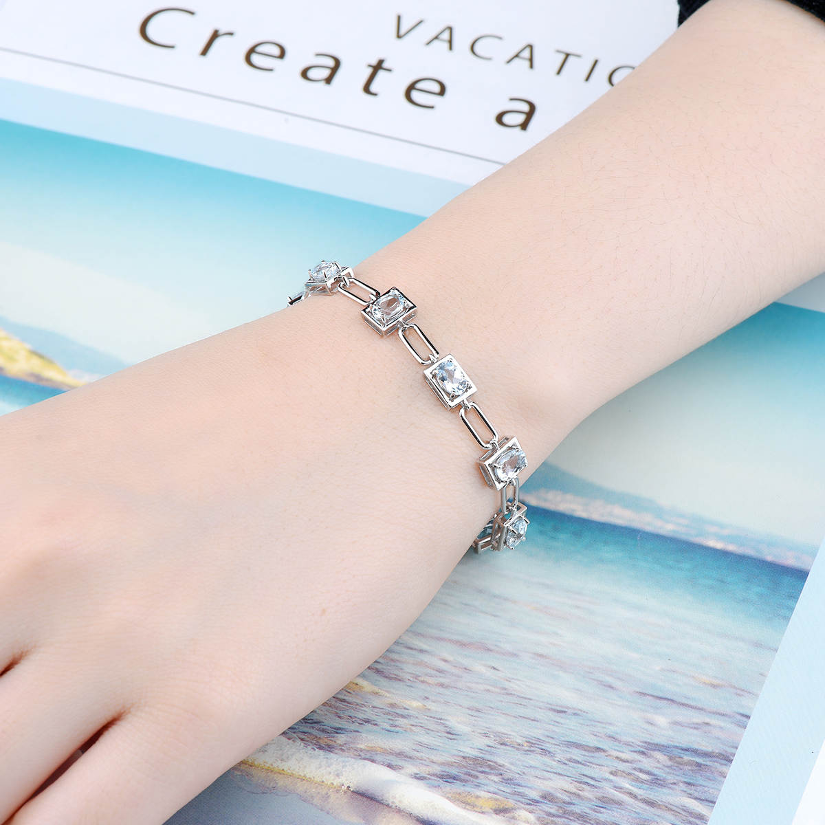 Genuine Solid Silver 925 Aquamarine Bracelet Natural Light Blue Gemstone Women Elegant Style Jewelry Birthday Gift