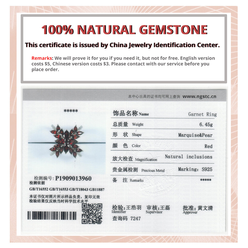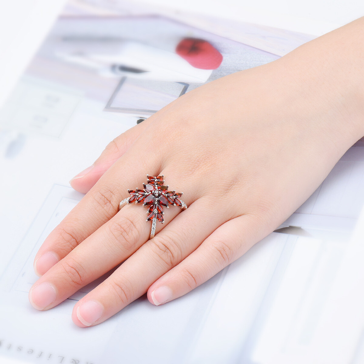 Real Garnet Women's Ring Solid 925 Sterling Silver Natural Red Gemstone