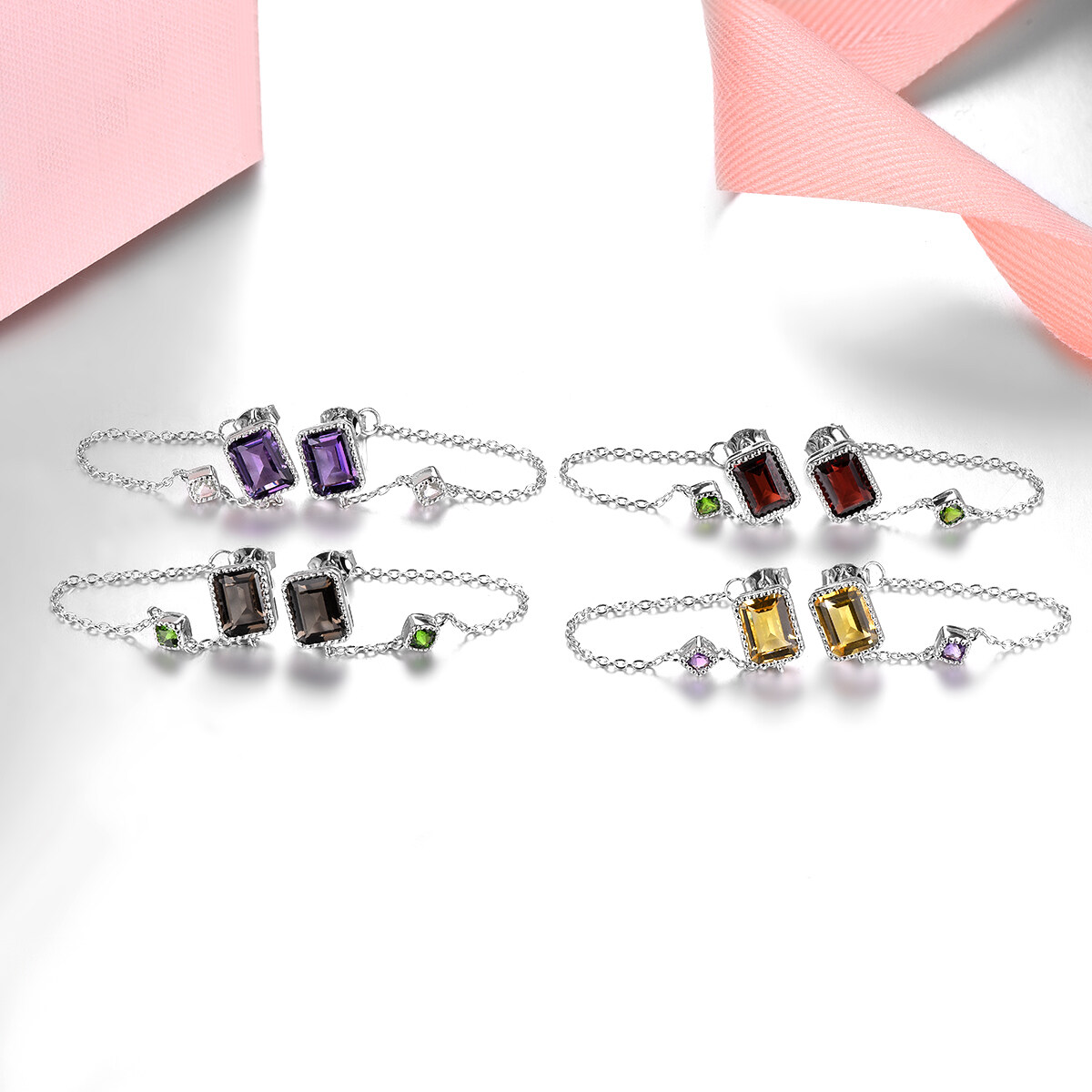 Natural Garnet Drop Earring Ladies Special Jewelry 3.57 Carats Precious Gemstone Amethyst Citrine Natural Quartz Unique Original Design Fine Jewelry Birthday Anniversary Gifts