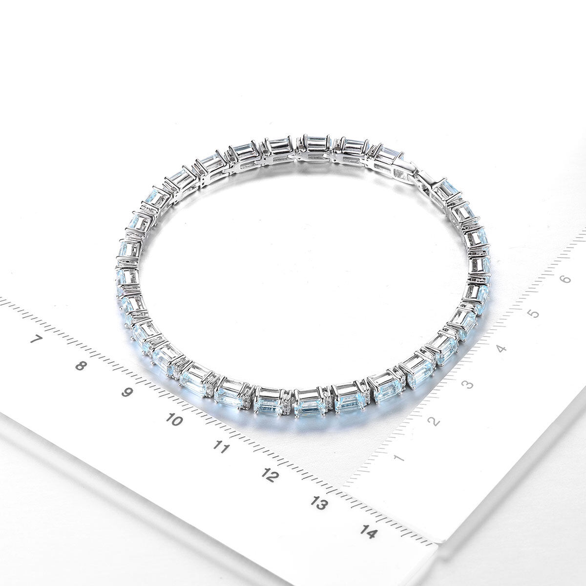 Lohaspie Jewelry Original 8 Carat Solid Sterling Silver 925 Bracelet Natural Aquamarine Bracelet Light Blue Gemstone Aquamarine Bracelet For Women Jewelry Mother's Day