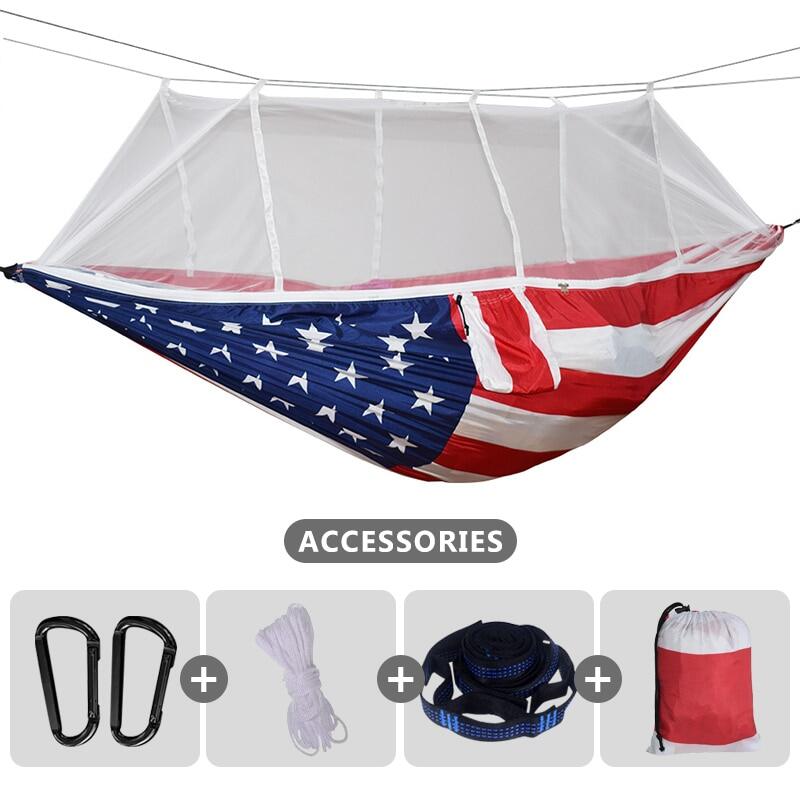 Camping Hammock With Mosquito Net Double Travel Hammock With Tree Straps 5+1 Loops Can Hold 300Kg For Hiking Climb Backpacking