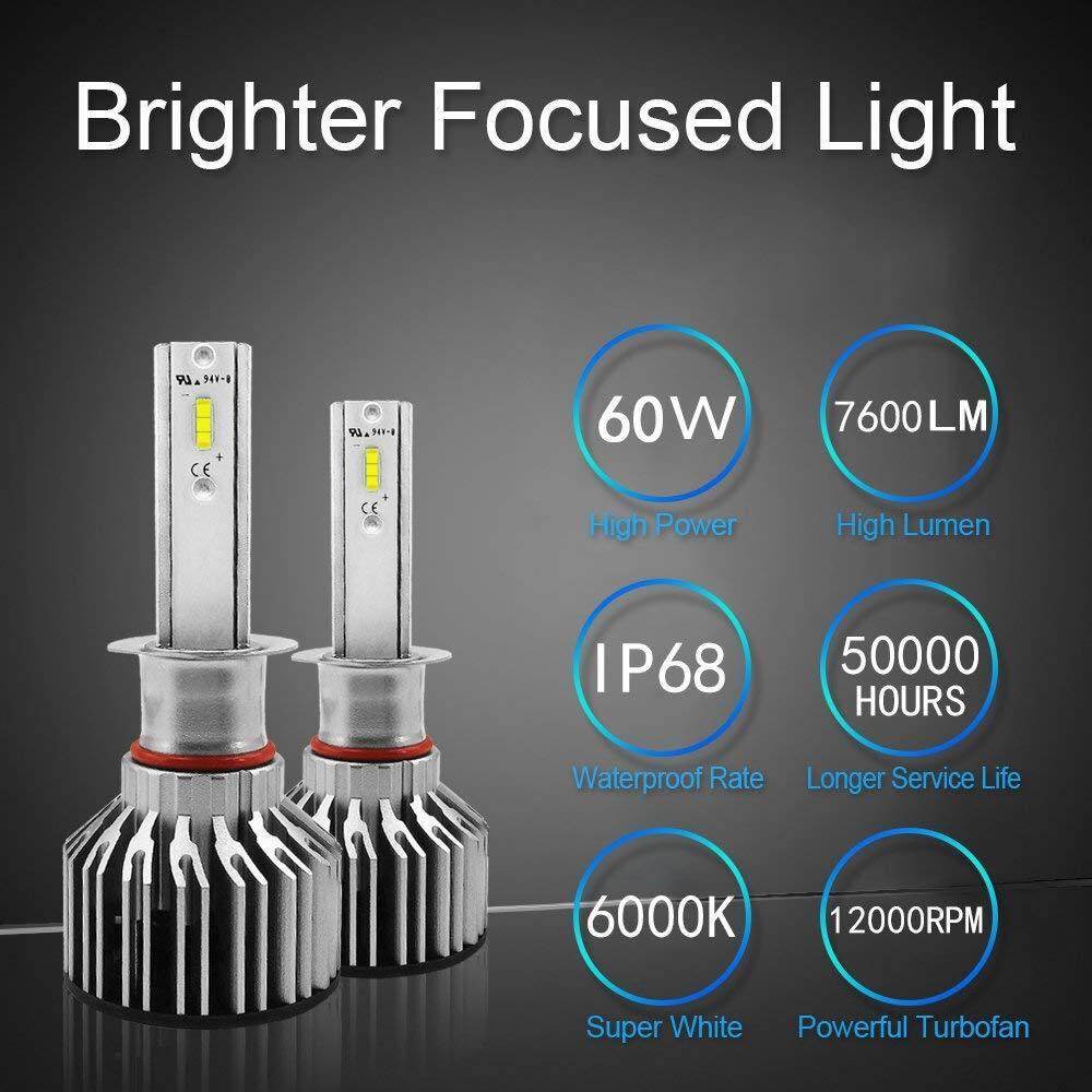 EKLEVA H1 LED Headlight Bulbs All-in-One Conversion Kit, 2PCS S6 Series Advanced CSP Chips 60W 7600LM 6000K Extremely Bright Cool White