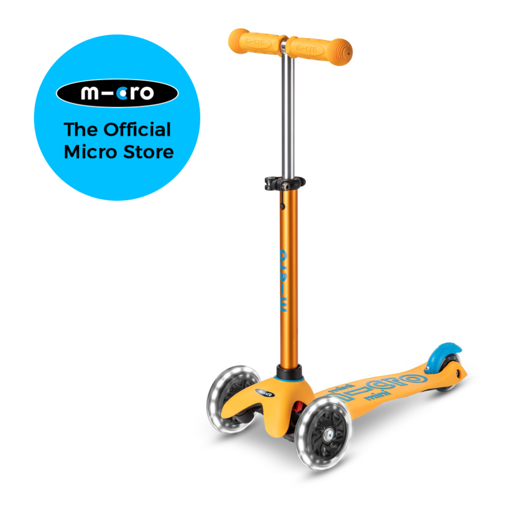 Surfing the sidewalk – the Mini Micro was elected Toy of the Year by kids and parents several times! This sports toy not only encourages movement and exercise, it also helps children to learn balance, co-ordination and motor skills.It was specially developed for toddlers and preschoolers, in collaboration with Swiss medical professionals.The T-tube handle makes it even safer and has a safety lock so that only parents can remove it, when needed, for storing. The Mini Micro‘s unique lean-and-steer mechanism is patented. The soft plastic and rounded edges make it easier for younger children to handle and helps avoid injuries.The high-quality brake has a steel spring insert and doesn‘t heat up while breaking. Now available as DELUXE version with LED front wheels!