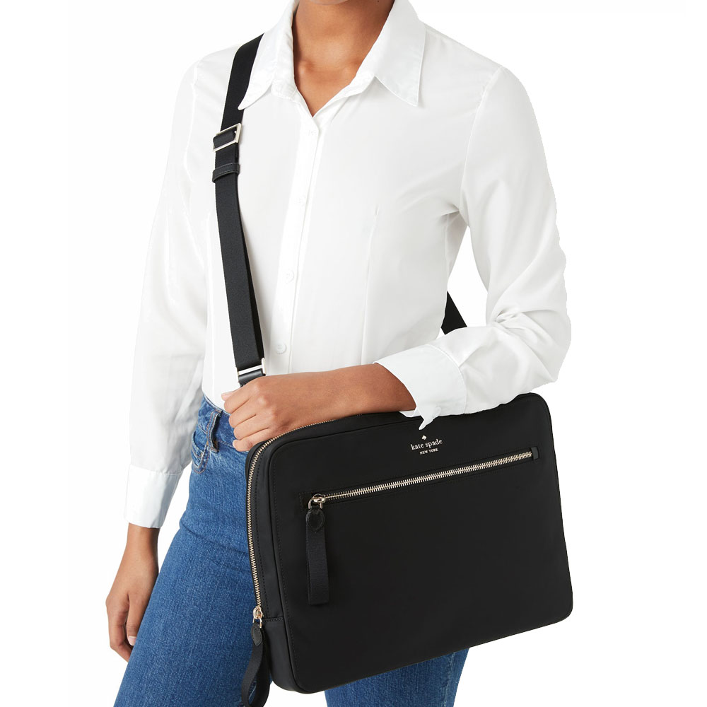 Kate Spade Handbag With Gift Paper Bag Laptop Bag Little Better Nylon Laptop Sleeve With Strap Black # WKR00577