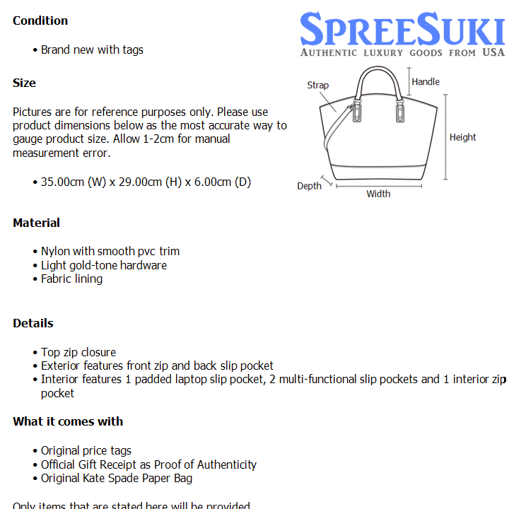 All our products are 100% authentic and purchased from Kate Spade stores in USA. We are a reputable registered business in Singapore and it is illegal to sell counterfeit goods in Singapore. This product also comes with a gift receipt which is printed by the Kate Spade store that we purchased the item from. It states the item that we purchased and the Kate Spade store that it was purchased from, proving the authenticity of the item. Buy with confidence.