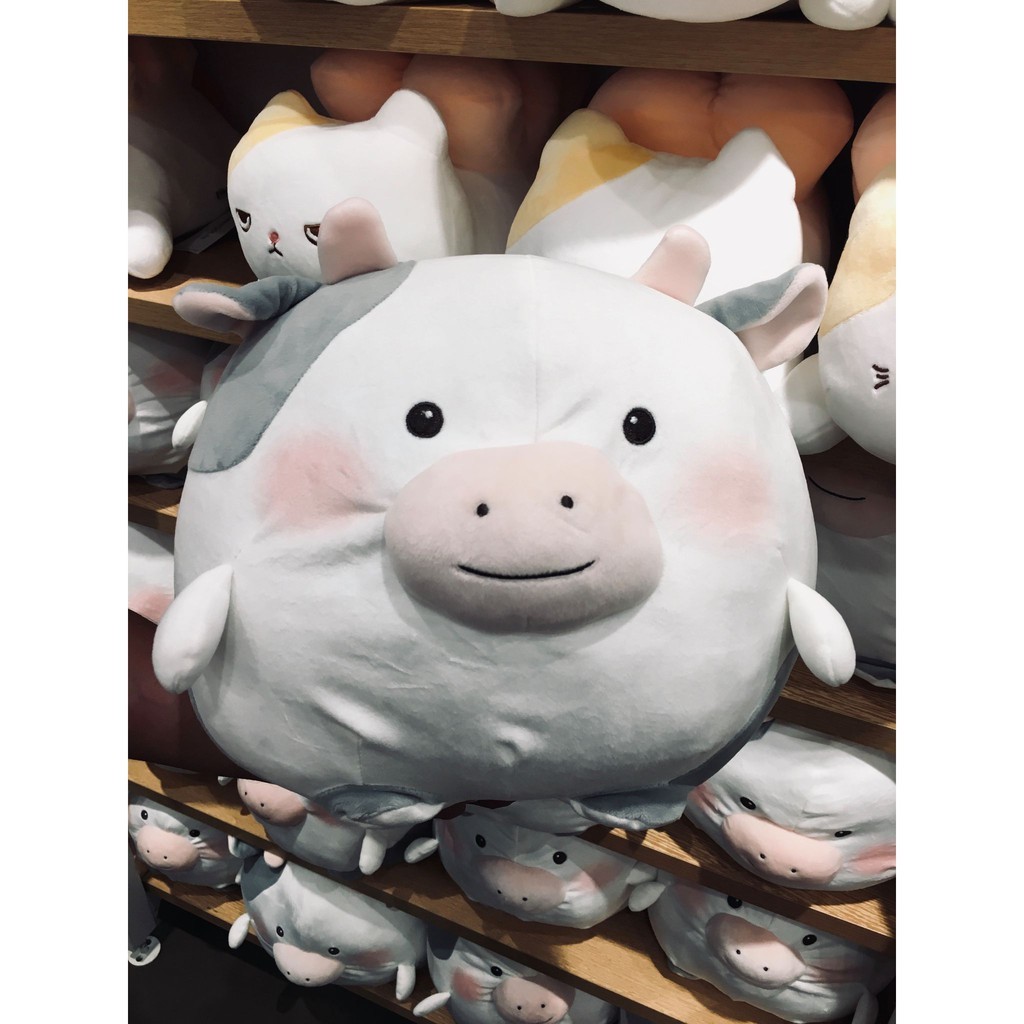Miniso Round Cow Plush Toys Stuffed Toys Soft Kids Pillow Home Car Decoration Cushion